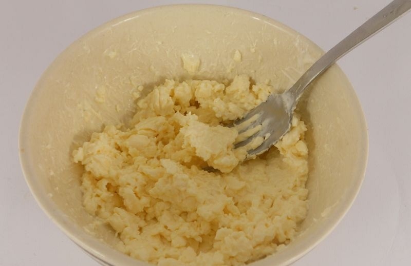 - Разомни плавленный сыр, добавь майонез и сметану. Тщательно перемешай.