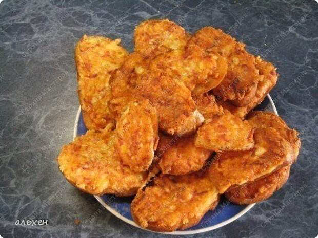 5. И эти самые кусочки хлеба на сковородку. ФАРШЕМ ВНИЗ!