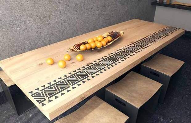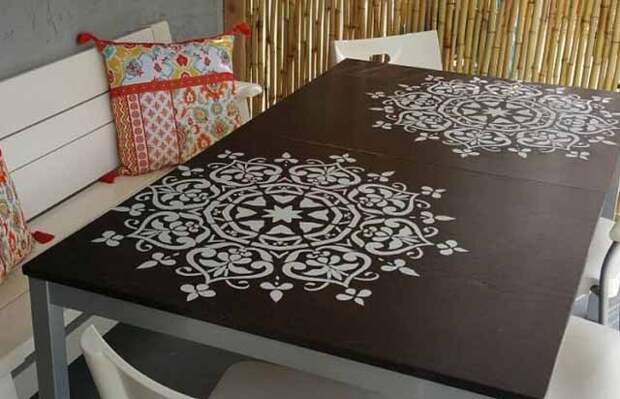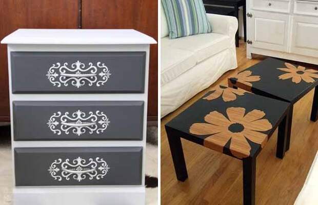 Когда вы будете уверенно себя чувствовать в использовании трафаретов, то можете интересно обновить и новую мебель.