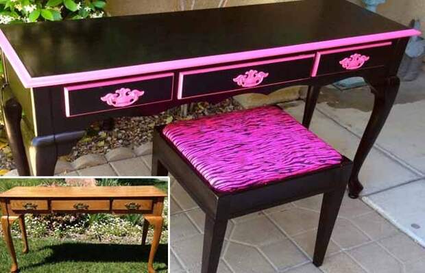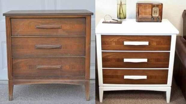 Вот так просто с помощью краски и новых ручек можно обновлять столы, шкафы и комоды.