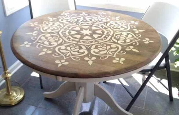 Если вас увлекла идея росписи по трафарету, вы можете использовать для обновления мебели более сложные трафареты. Их можно купить в специализированных магазинах по рукоделию.