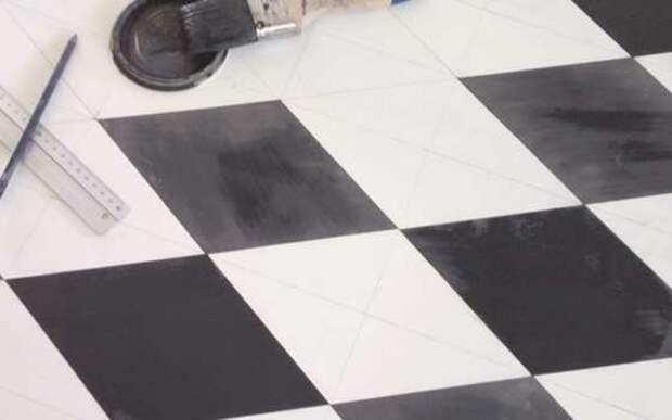 Сначала мы аккуратно расчертили поверхность, а затем раскрасили рисунок в шахматном порядке.