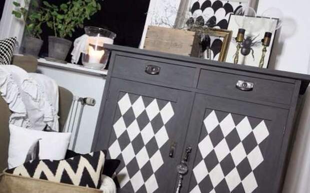 Используя этот способ обновления мебели, обращайте внимание не только на сложные узоры, но и на интересное сочетание простых мотивов.