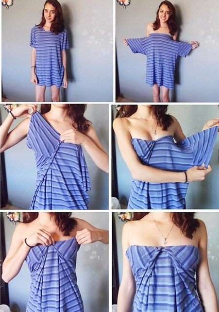 Еще один тренд этого лета — драпировка. Сделать ее проще, чем уложить волосы. Возьми длинный кусок ткани (подойдет даже длинный и широкий весенний шарф) и обмотай вокруг себя 1-2 раза.