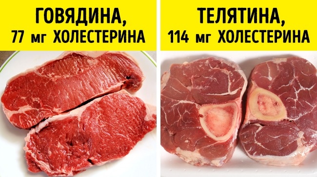Принято считать, что телятина не только больше подходит для диетического питания, но и в целом полезнее, чем говядина. На самом же деле калорийность нежирной говядины и телятины примерно одинакова, а вот содержание холестерина в телятине заметно выше. Кроме того, у говядины более насыщенный вкус, а вот телятина, как правило, довольно водянистая.